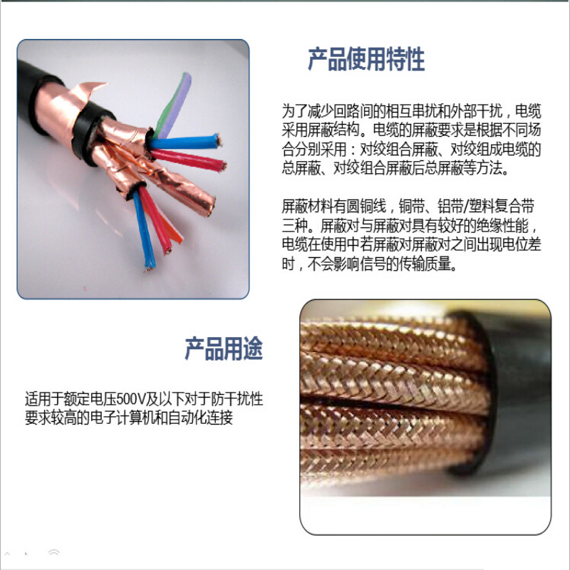 本产品适用于额定电压为500v及以下要求高抗干扰性的电子计算机和自动化连接电缆。电缆接地芯绝缘采用K型B类低密度聚乙烯具有抗氧化性能。聚乙烯具有较高的绝缘电阻,不错的耐电压,低介电系数,低介电损耗,温度和可变频率,不仅可以满足传输性能的要求,而且可以确保电缆的使用寿命。
