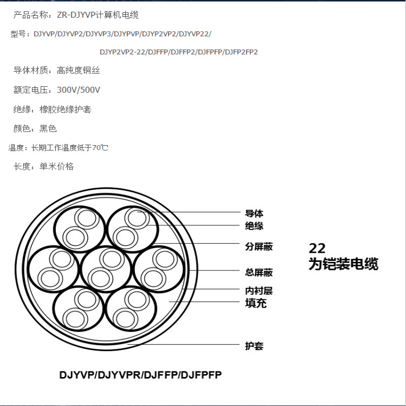 KVVP2-32铜芯聚氯乙烯绝缘聚氯乙烯夹克铜带屏蔽的钢丝铠装