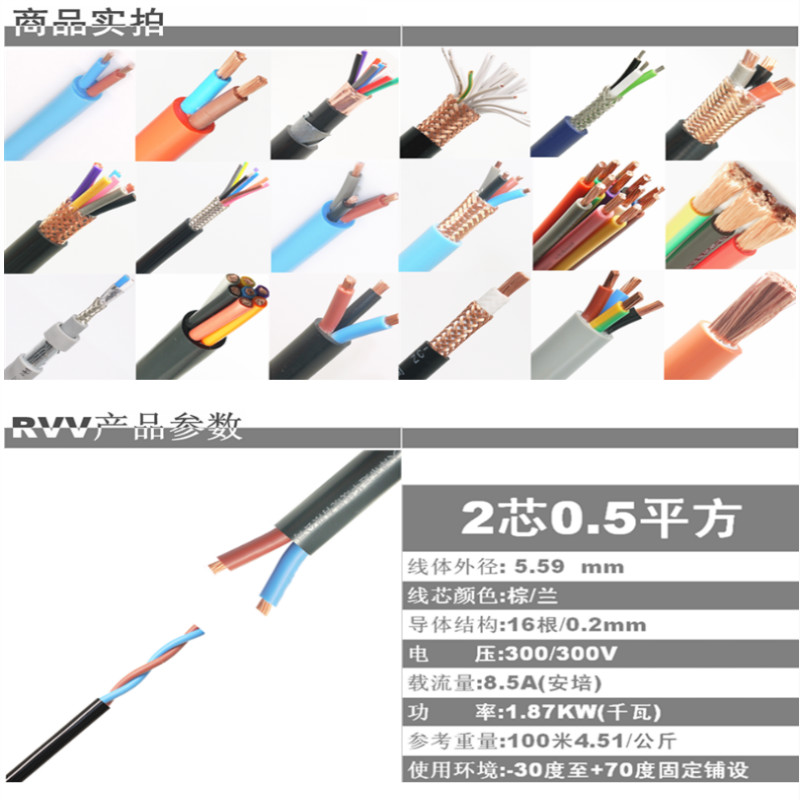产品详情:适用范围:本产品适用于交流额定电压450/750v及以下的控制,监视电路和保护电路。使用特点:1.导体的长期容许工作温度为70℃2。铺设期间的环境温度≥0℃。3小弯曲半径:4.不带铠装层的电缆,应不小于电缆外径的6倍。5。铠装电缆或铜带屏遮构造电缆,不应小于电缆外径的12倍